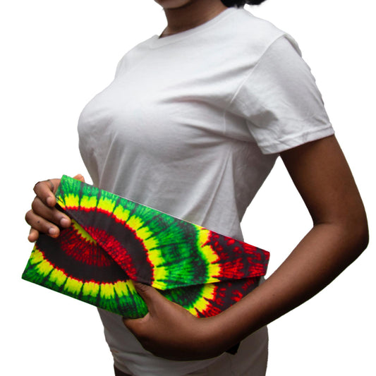 Ankara Clutch Purse for Women – African Print Handbag | Colorful Wax Print Evening Bag | Ankara Fold-Over Envelope Clutch (Tie-Dye, Red Waves, Black & White Floral)